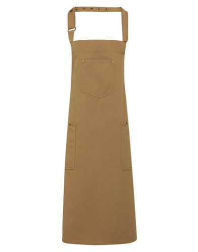 Pamut kötény, állítható nyakpánttal, három zsebbel - Khaki