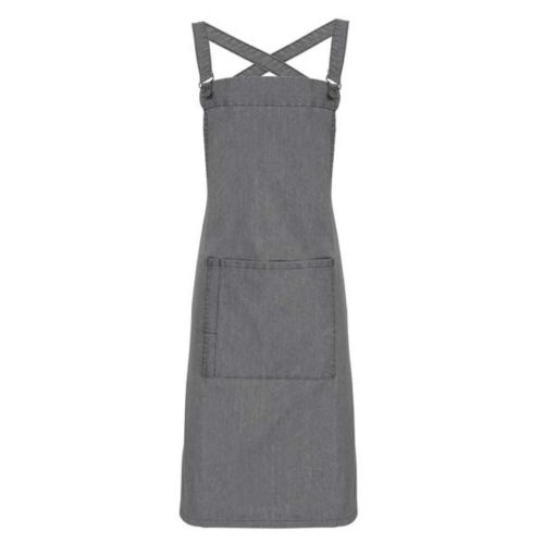 Barista kötény, keresztpántos, zsebes - Szürke farmer